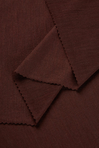 This TENCEL™–wool blended rib knit is engineered to balance softness, moisture regulation, and thermal stability for close-to-skin applications. Following the recommended care instructions helps maintain fiber integrity, dimensional stability, and surface performance over repeated wear and laundering.